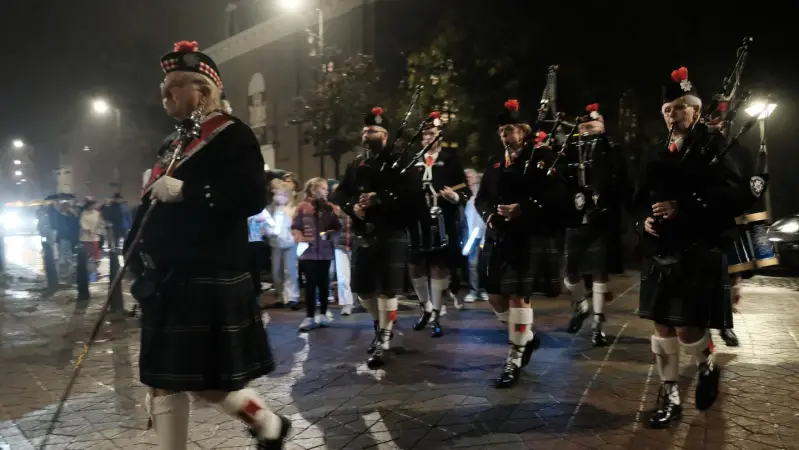 Breda City Pipes and Drums speelde alle belangstellenden binnen, alvorens de dienst begon in de plaatselijke Hervormde Kerk. Tijdens de dienst werd er er verteld over het bombardement. Na de dienst werden de bezoekers onder begeleiding van het nummer Amazing Grace naar buiten begeleid, voor de start van de lichtjesoptocht.